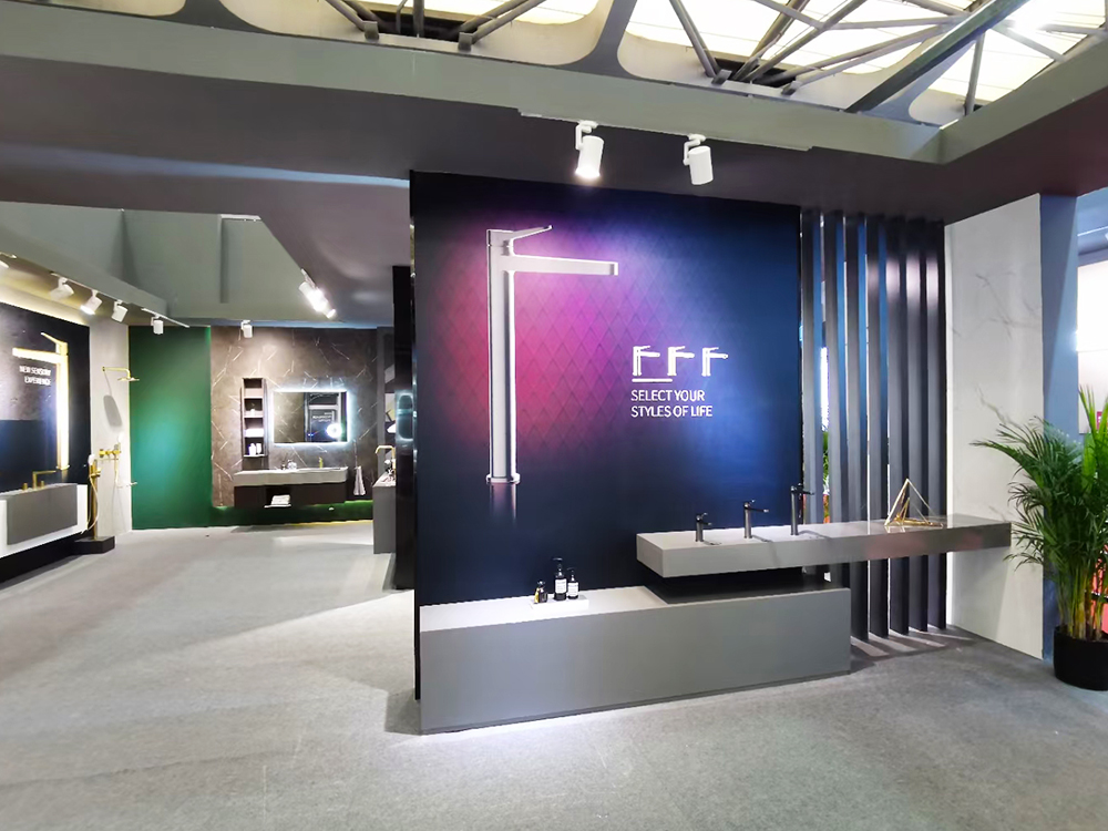 作为29年深耕卫浴五金的品牌,帝朗卫浴在展馆的设计上别具匠心。整体以经典黑白灰为主色调,营造质感空间。