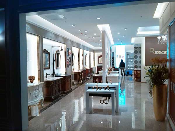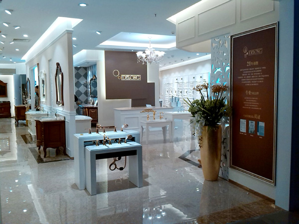 帝朗上海金桥红星店整体面积超200平方,同时展示了帝朗三大风格产品——简约风格、欧式风格、铂金风格,此外高端奢华欧式浴室柜的加入,更为帝朗展厅增添了亮点。