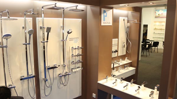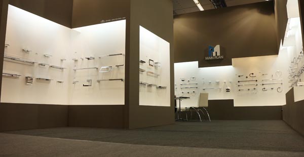 Main plan敏宝(帝朗卫浴母公司)展位,简洁大方的门头设计,传达出帝朗卫浴一贯推崇的时尚简约风格。