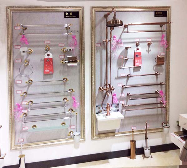 店铺装修时尚高端大方,明亮宽敞的店铺,井然有序陈列着各类设计精美的五金卫浴产品,给你精致生活享受。