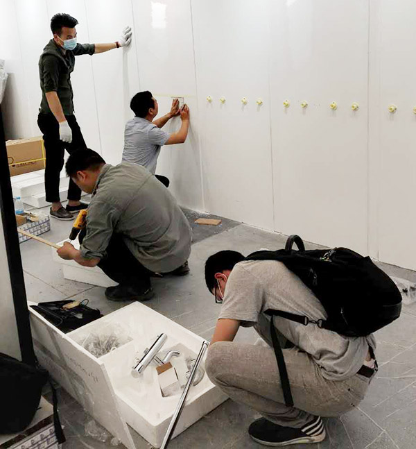 ▲ 帝朗员工紧张有序地安装产品