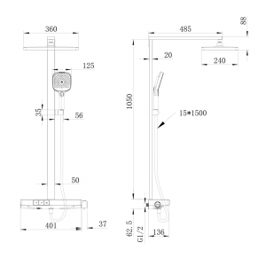 三功能按键旋钮式平台雨林(470mm不锈钢平台、可调节水量、手持带喷枪功能)