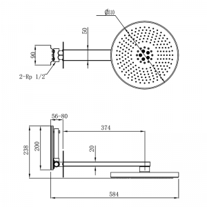 商品名称:两功能入墙花洒顶喷(带预埋盒、花洒臂)