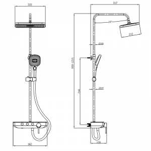 三功能按键旋钮式平台雨林(470mm不锈钢平台、可调节水量、手持带喷枪功能)
