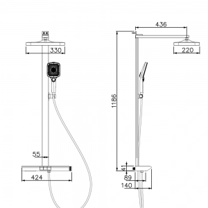 三功能按键旋钮式平台雨林(470mm不锈钢平台、可调节水量、手持带喷枪功能)
