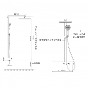 三功能按键旋钮式平台雨林(470mm不锈钢平台、可调节水量、手持带喷枪功能)