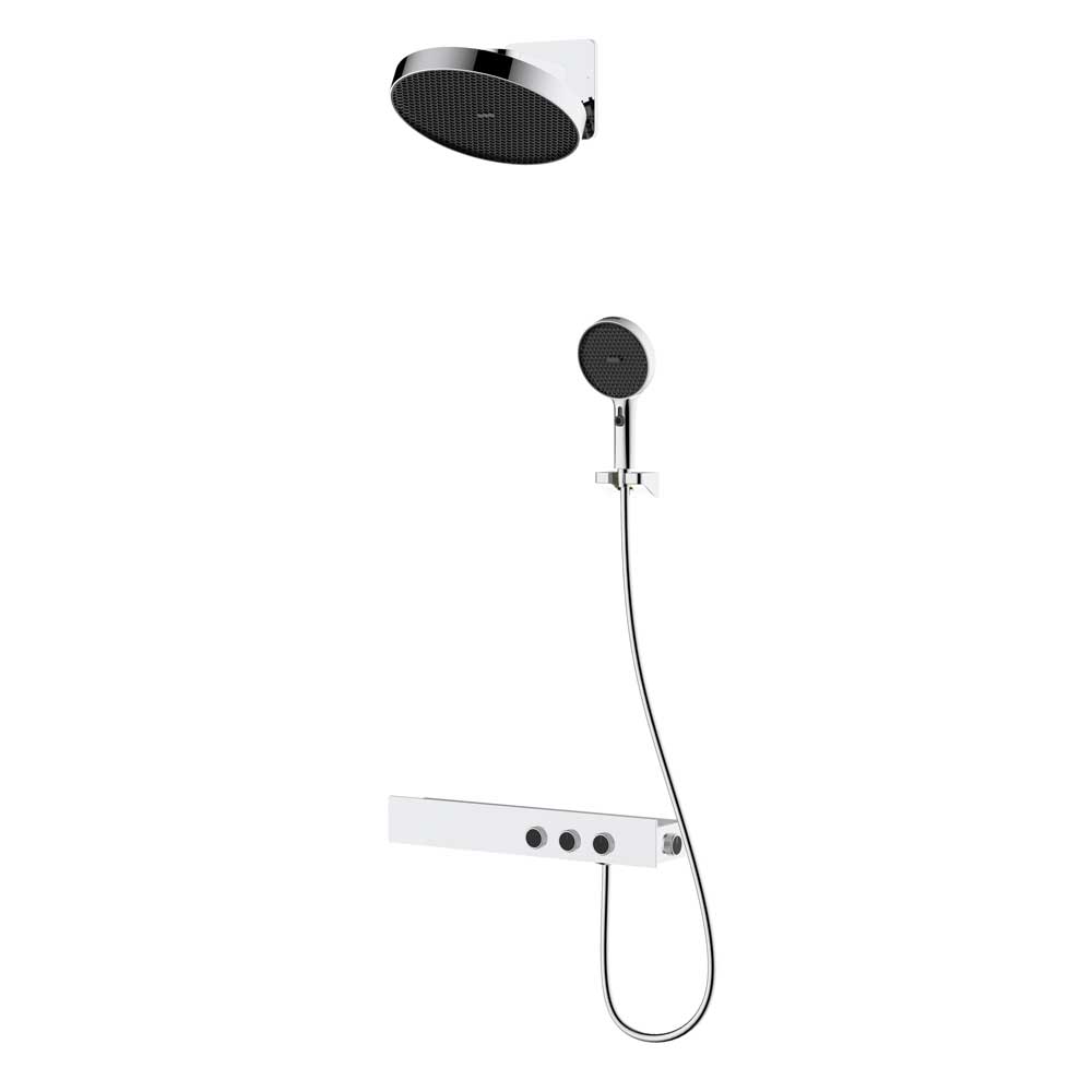 三功能按键旋钮入墙式平台雨林(530mm不锈钢平台、可调节水量、手持带喷枪功能)