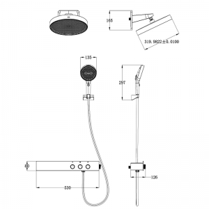 三功能按键旋钮入墙式平台雨林(530mm不锈钢平台、可调节水量、手持带喷枪功能)
