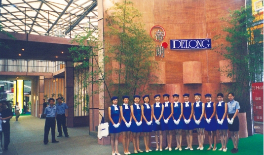 1999年,呈现在大家面前的是一个一丝不苟的帝朗。无论是追求产品品质,还是客户、任何事情,帝朗都以一丝不苟的态度认真对待。深蓝色为基调的展示厅,加上红底白字的招牌标识,方形蓝柱分隔原木色产品展示板,整体传达着沉着稳重的企业内涵。
