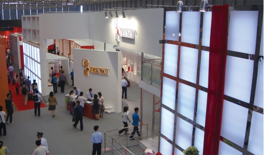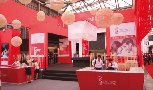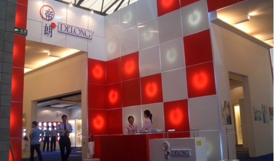 2008年,帝朗上海展形象大胆采用红色为主色调,给人热情奔放的感觉,展现了帝朗海纳四川的企业胸怀。而展区的空中悬浮着大小不一的藤球,这与帝朗logo“天圆地方,可圈可点”的圆是密切联系的,营造一种太空科技感的同时,传达帝朗产品均采用世界最先进的生产设备生产,技术卓越。该年帝朗凭借着优质产品,夺目的形象,毫不费力地成为全场的焦点。