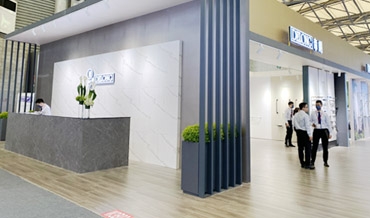 2015年,时尚高端的帝朗展厅再次惊艳全场,展厅大面积采用白色,匹配帝朗阳光健康的品牌形象。白色镂空隔墙,充满现代设计感,分隔不同展区同时让展厅更加通透。