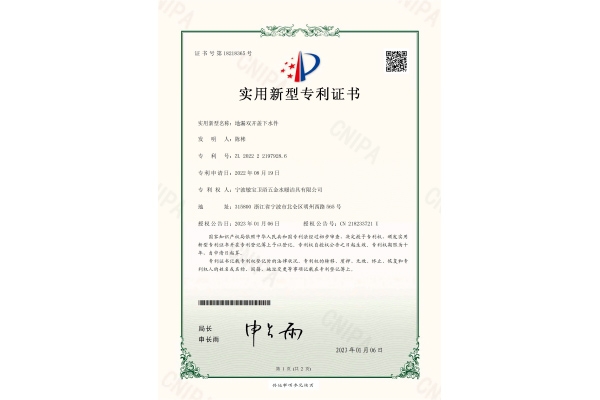 蝴蝶地漏专利证书