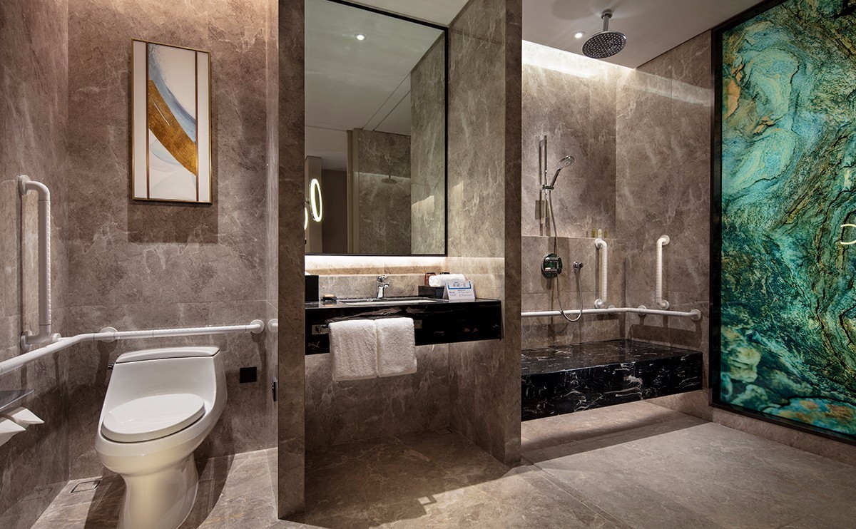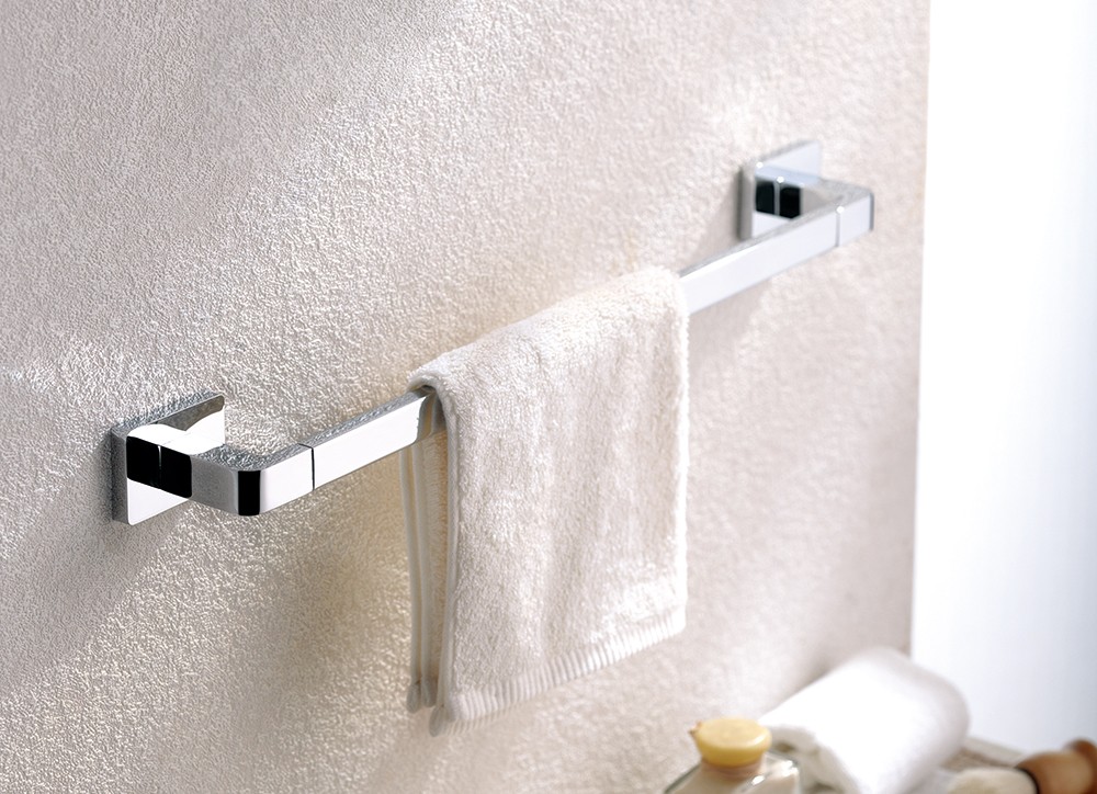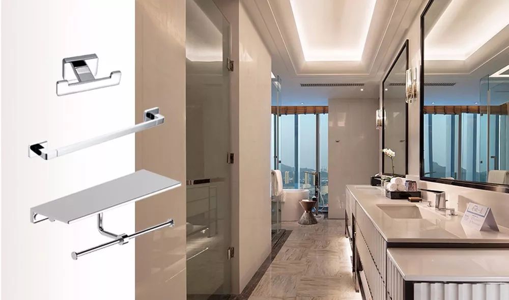帝朗浴室挂件,极简造型设计与纯粹配色组合,以流畅的线条,配以经典亮铬,极富创意又不失经典,带来纯洁透亮、优雅闲适的视感体验,为希尔顿酒店卫浴空间增添一份精致与质感。