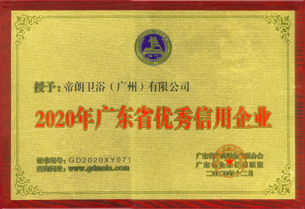 日前,由广东省现代服务业联合会、广东省电子商务协会等联合主办评选的“2020年广东省优秀信用企业和广东省信用标杆企业”名单揭晓。凭借优秀信用和卓越的品牌影响力,帝朗卫浴获评“2020年度广东省优秀信用企业” 荣誉称号。