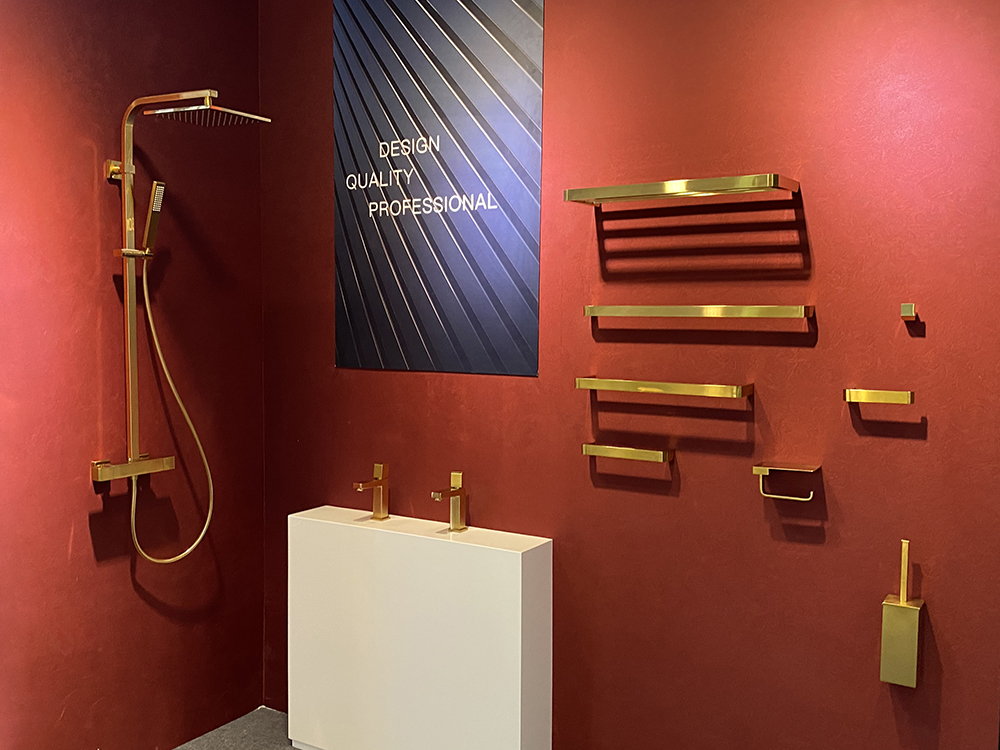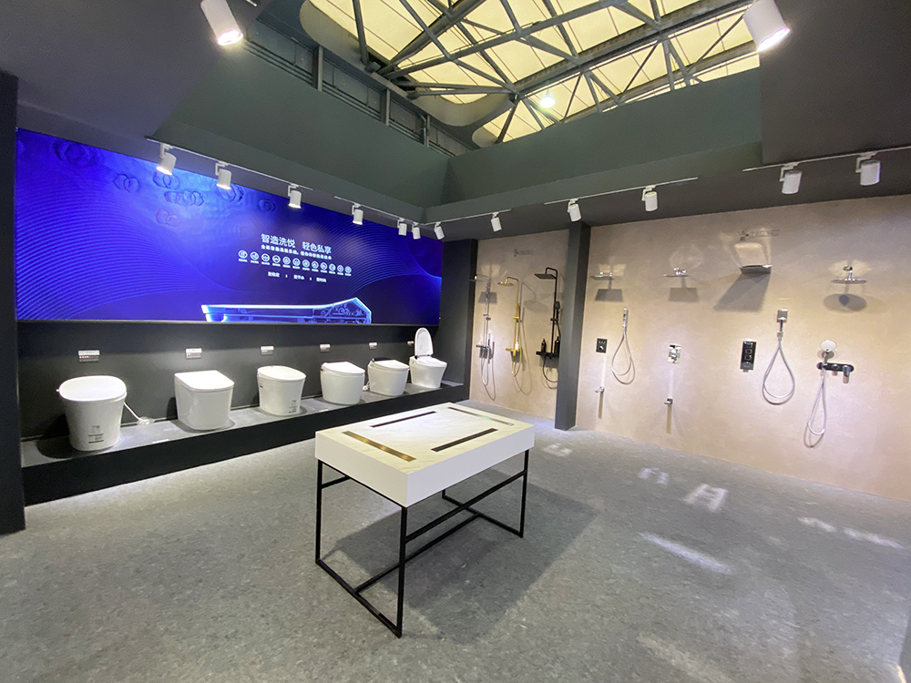 此次展会,帝朗卫浴展示的产品包含浴室挂件、水龙头、花洒、智能马桶、电热毛巾架等,全方位展示卫浴空间。