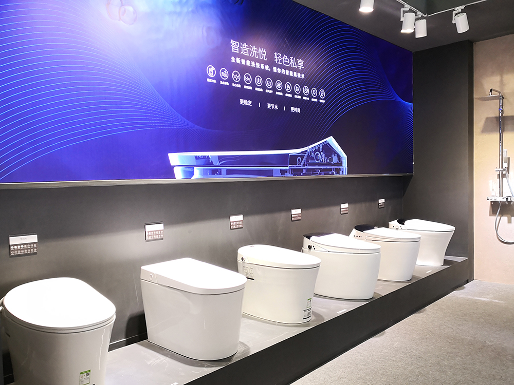 帝朗一众新款智能马桶毫无疑问成为了展位的一大亮点。脚感冲水、智能显屏、遥控操控、一键旋钮、抗菌技术、智能翻盖......各种智能黑科技的应用,给用户带来更加健康的生活。