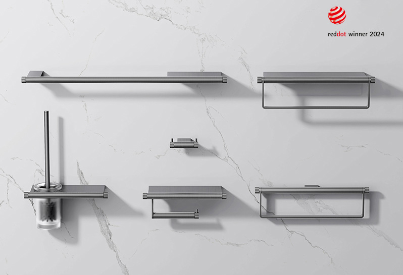 近日,帝朗卫浴Dera Series浴室挂件荣获全球设计界瞩目的2024年德国红点奖,其极简设计、触手可及的多功能收纳方式获得国际评委的一致肯定。