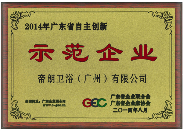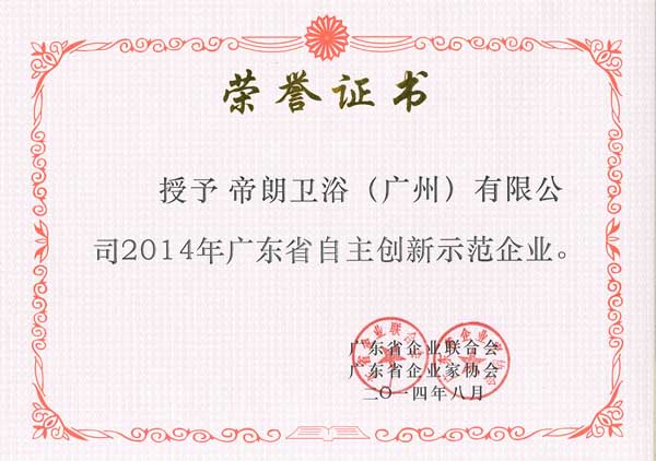 帝朗卫浴在“2014年广东省自主创新示范企业”评选过程中,接受广东省企业联合会、广东省企业家协会的严格评审,社会公众的公平监督,层层筛选,最终脱颖而出,获得了“2014年广东省自主创新示范企业”殊荣。
