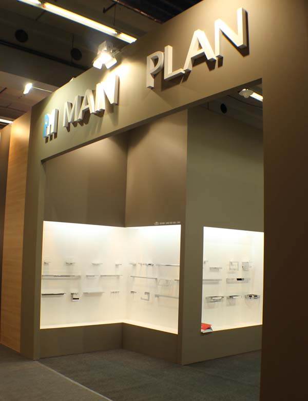 Main plan敏宝(帝朗卫浴母公司)展位,简洁大方的门头设计,传达出帝朗卫浴一贯推崇的时尚简约风格。
