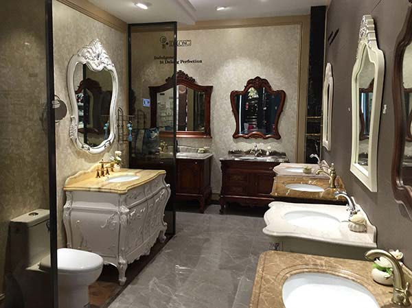 欧式浴室柜区欧式浴室柜区欧式浴室柜区,陈列众多经典设计欧式柜,天赋立体木纹、细致雕花、天然大理石等稀贵特色,演绎浴室柜的高贵典雅魅力,同时让你畅享尊贵艺术之美。