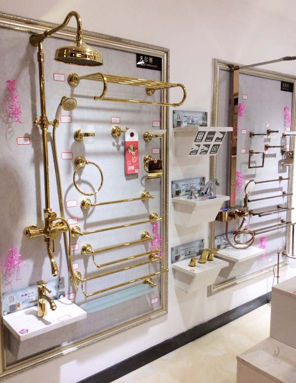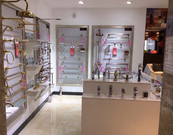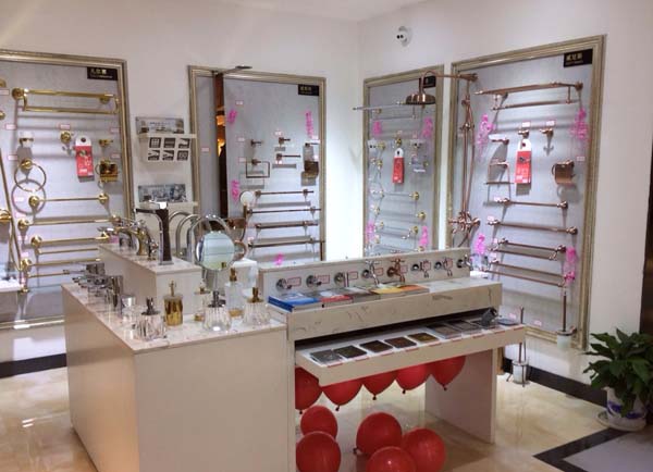 店铺装修时尚高端大方,明亮宽敞的店铺,井然有序陈列着各类设计精美的五金卫浴产品,给你精致生活享受。
