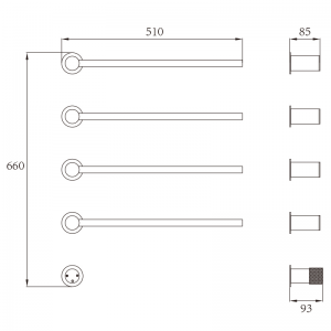 商品名称:4+1入墙式电热毛巾架