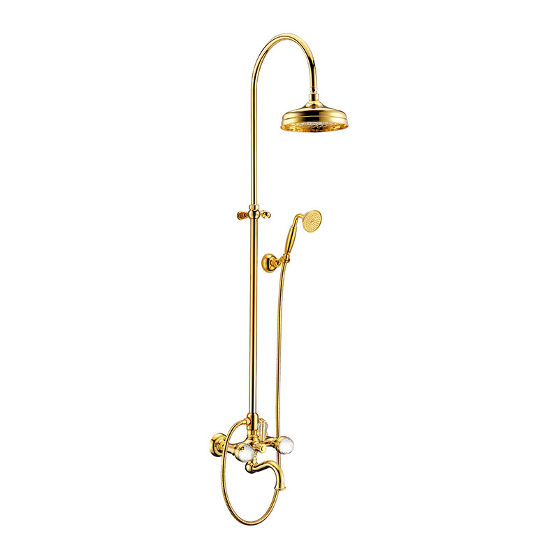 超凡国际:您当前的位置是:产品中心>>龙头>> 进口龙头>>双控水晶把手带下出水雨林套装
